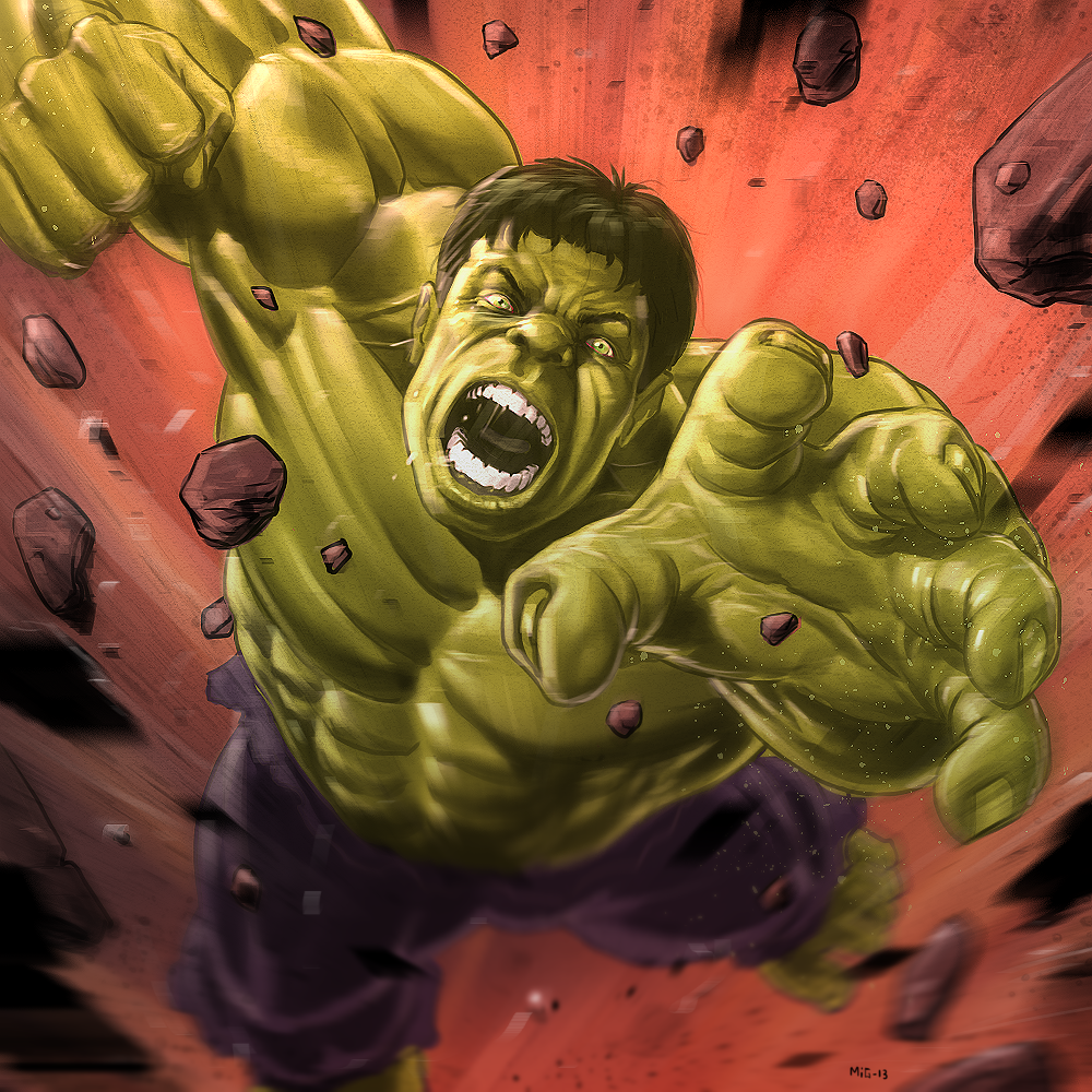 Following his accidental exposure to gamma rays saving the life of Rick Jones during the detonation of an experimental bomb, Banner is physically transformed into the Hulk when subjected to emotional stress, at or against his will, often leading to destructive rampages and conflicts that complicate Banner’s civilian life. The Hulk’s level of strength is normally conveyed as proportionate to his level of anger. Commonly portrayed as a raging savage, the Hulk has been represented with other personalities based on Banner’s fractured psyche, from a mindless, destructive force, to a brilliant warrior, or genius scientist in his own right. Despite both Hulk and Banner’s desire for solitude, the character has a large supporting cast. This includes Banner’s lover Betty Ross, his best friend Rick Jones, his cousin She-Hulk, and therapist and ally Doc Samson. In addition, the Hulk alter ego has many key supporting characters like his co-founders of the superhero team the Avengers, his queen Caiera, fellow warriors Korg and Miek, and sons Skaar and Hiro-Kala. However, his uncontrollable power has brought him into conflict with his fellow heroes and others. Despite this, he tries his best to do what’s right while battling villains such as Leader, Abomination, Absorbing Man and more.